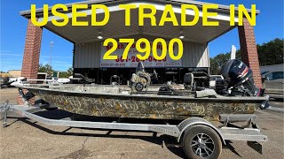 Standard equipment for the side console 961 Blackhawk includes a full skin out with carpet, vinyl or spray liner, 16 gallon fuel tank, 9" windshield, running lights with rocker switches, bilge pump, side console with live well, bracket with wiring for 24V trolling motor, storage box with driver and passenger seats, 2 seats with spiders, 2 pole extensions, bow storage, metal gas tank cover, 4 cleats, upgraded paint option, 3 base plates in front low deck, 1 base plate in high rear deck, V-bow and a V-hull.
